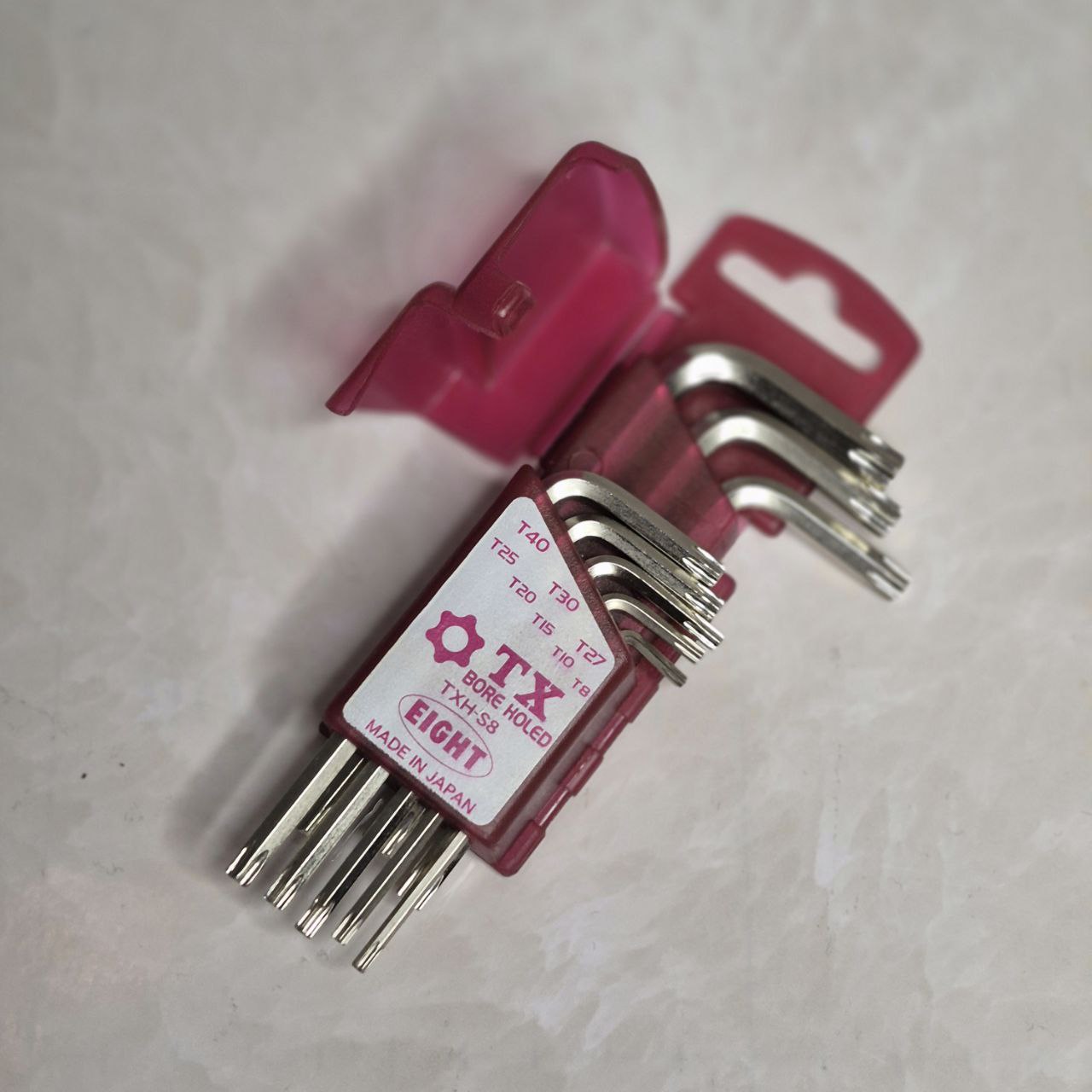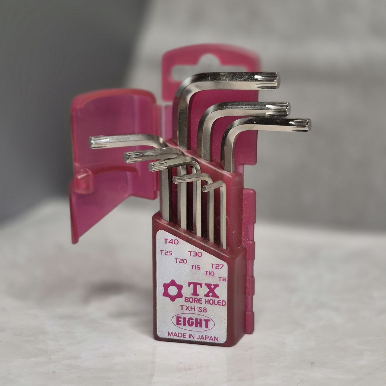 این محصول یک ست ۸ عددی آچار آلن ستارهای (Torx) سوراخدار از برند معتبر ایت ژاپن است که برای باز و بسته کردن انواع پیچهای خاص و امنیتی در سایزهای T8 تا T40 کاربرد دارد. این آچارها از فولاد سخت ساخته شده و دارای روکش کروم وانادیوم هستند که باعث مقاومت بسیار بالا در برابر خوردگی و زنگزدگی میشود. همچنین این ست برای حمل و نقل و نظمدهی آسانتر، به همراه یک هولدر مقاوم عرضه شده است.